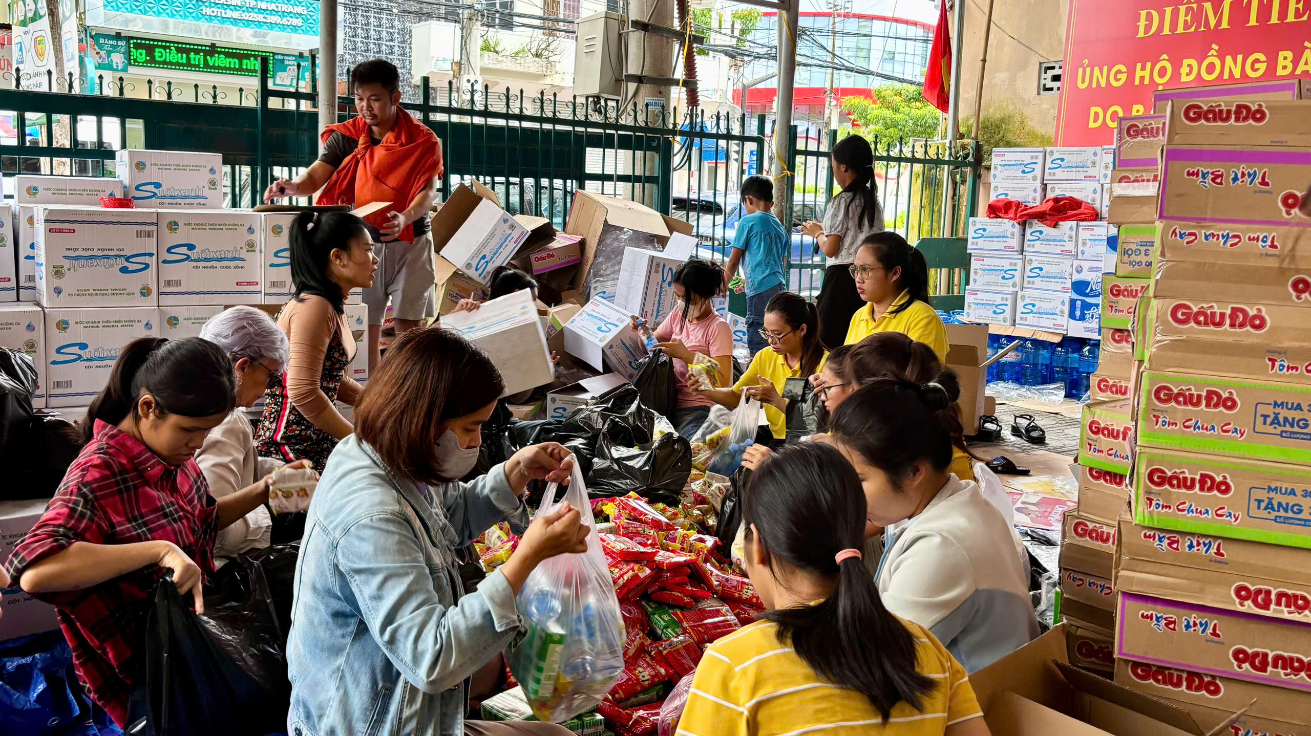 Những ngày qua, mưa lớn kéo dài trên địa bàn tỉnh Khánh Hòa đã gây ngập lụt tại nhiều khu vực, ảnh hưởng nặng nề đến đời sống của hàng nghìn hộ dân. Trong lúc bà con còn đang chật vật khắc phục hậu quả, từng chuyến hàng cứu trợ từ khắp nơi đã liên tục được gửi về với tình yêu thương và tinh thần “lá lành đùm lá rách”. Trong đó, nhiều hàng hóa hỗ trợ từ người dân Khánh Hòa, người dân tại các tỉnh bạn, các nhóm thiện nguyện, đặc biệt là sự tham gia của những người bạn quốc tế đã được gửi tới Khánh Hòa với mong muốn đồng hành cùng bà con vượt qua gian khó. Không chỉ trao tặng quà, các bạn tình nguyện viên trong tỉnh và nước ngoài còn trực tiếp cùng lực lượng cán bộ Hội Chữ thập đỏ tỉnh Khánh Hòa đóng gói, phân loại, bốc xếp suốt ngày đêm tại điểm tập kết: Hội Chữ thập đỏ tỉnh Khánh Hòa, 34 Yersin, Phường Nha Trang, Khánh Hòa.