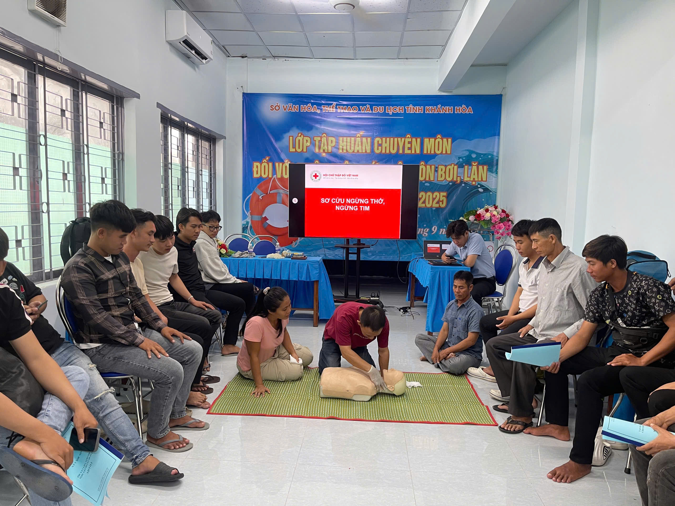 Ngày 15-9, Trung tâm đào tạo huấn luyện Sơ cấp cứu cộng đồng Hội Chữ thập đỏ tỉnh Khánh Hòa phối hợp với Sở Văn hóa, Thể thao và Du lịch khai giảng lớp tập huấn sơ cấp cứu cho hơn 60 cán bộ, nhân viên các doanh nghiệp, khách sạn và resort trên địa bàn tỉnh.
