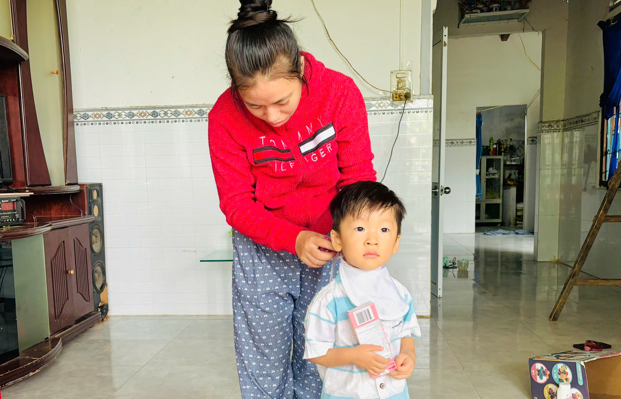 Theo thông tin trên Báo và Phát thanh, Truyền hình Khánh Hoà đăng ngày 24-10-2025 của phóng viên Thuỳ Dương - Thanh Trúc, cháu Bình đau ốm liên miên từ khi chào đời do viêm phổi, suy hô hấp nặng phải đặt ống nội khí quản, đồng thời mắc chứng nhược cơ tay phải, gặp khó khăn trong cầm nắm.