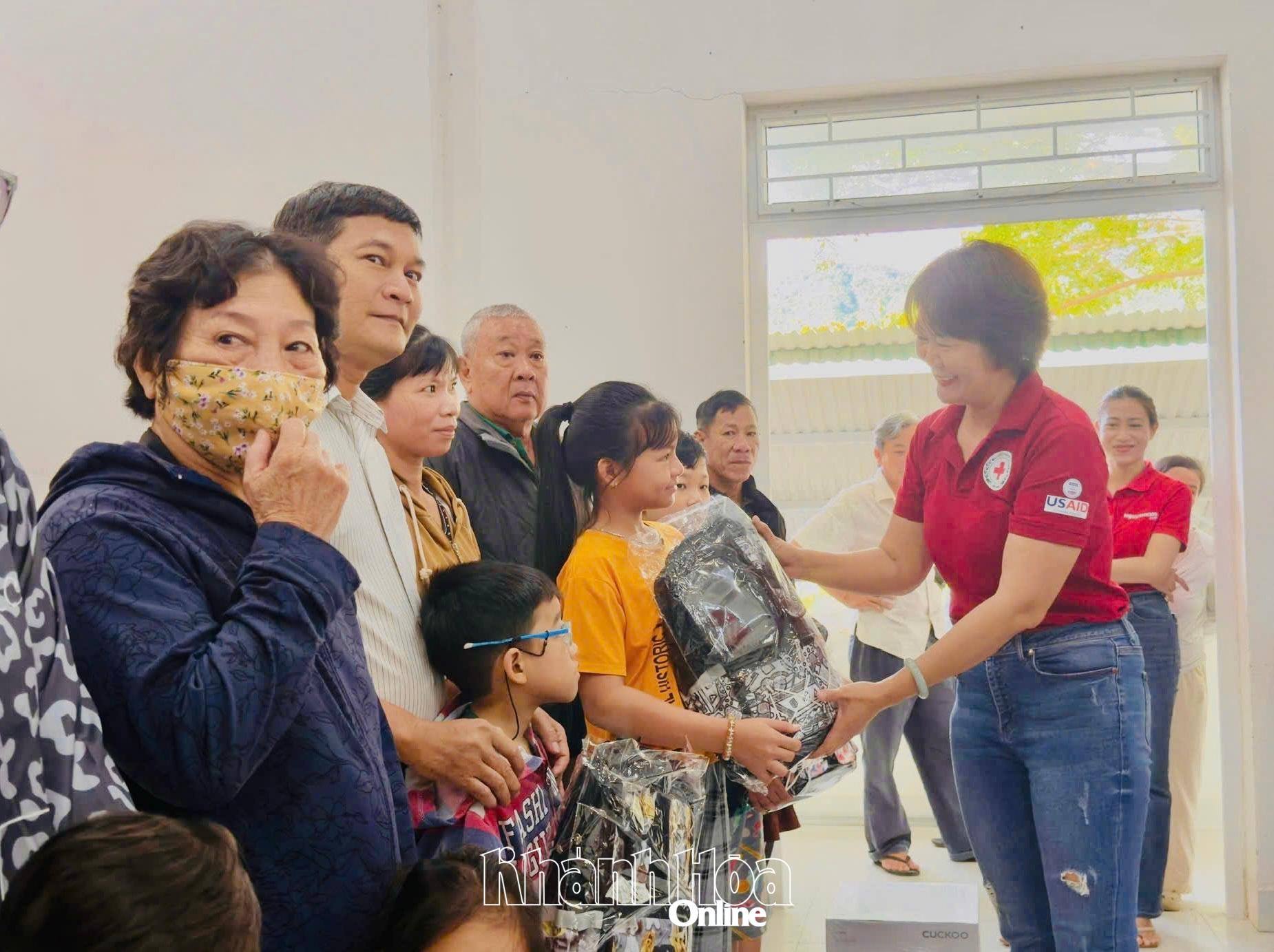 Đợt này, có 300 hộ dân được nhận quà, mỗi phần quà gồm đồ dùng gia đình, nồi cơm điện, ba lô, vở, bánh kẹo cho học sinh, trị giá gần 1,45 triệu đồng.