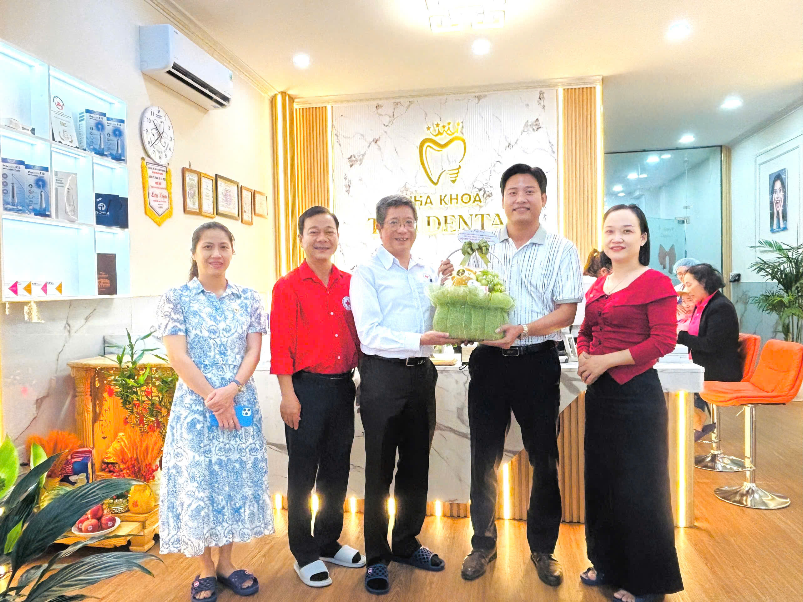 Ông Dương Nam Khánh, Chủ tịch Hội Chữ thập đỏ tỉnh Khánh Hoà, trưởng đoàn thăm, chúc mừng Nha khoa Quốc tế Tâm Dental nhân kỷ niệm 71 năm Ngày Thầy thuốc Việt Nam
