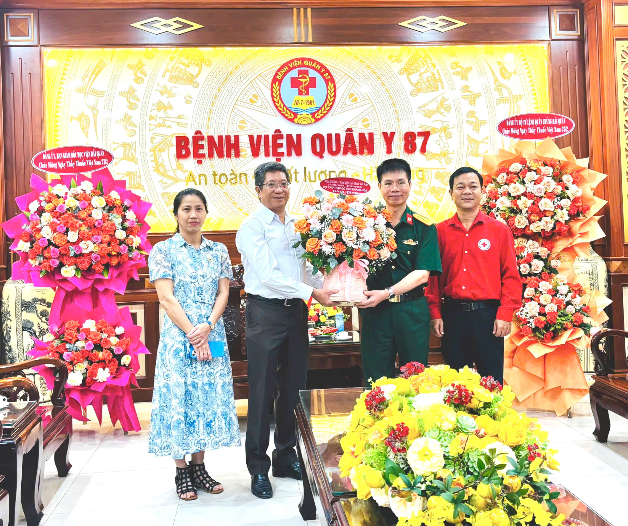 Ông Dương Nam Khánh, Chủ tịch Hội Chữ thập đỏ tỉnh Khánh Hoà, trưởng đoàn thăm, chúc mừng Bệnh viện Quân y 87 nhân kỷ niệm 71 năm ngày Thầy thuốc Việt Nam.