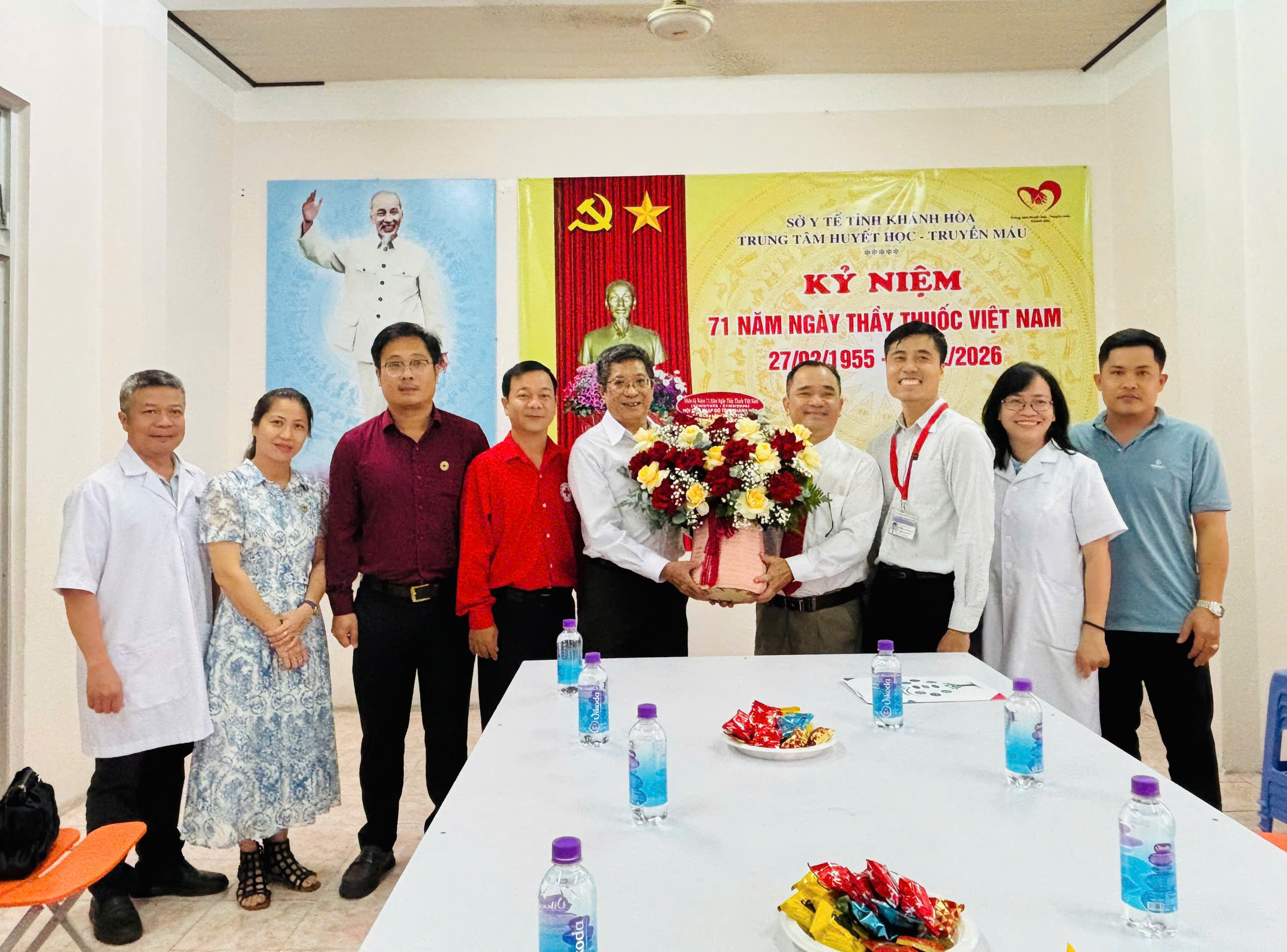 Ông Dương Nam Khánh, Chủ tịch Hội Chữ thập đỏ tỉnh Khánh Hoà, trưởng đoàn thăm, chúc mừng Trung tâm Huyết học - Truyền máu Khánh Hòa nhân kỷ niệm 71 năm Ngày Thầy thuốc Việt Nam