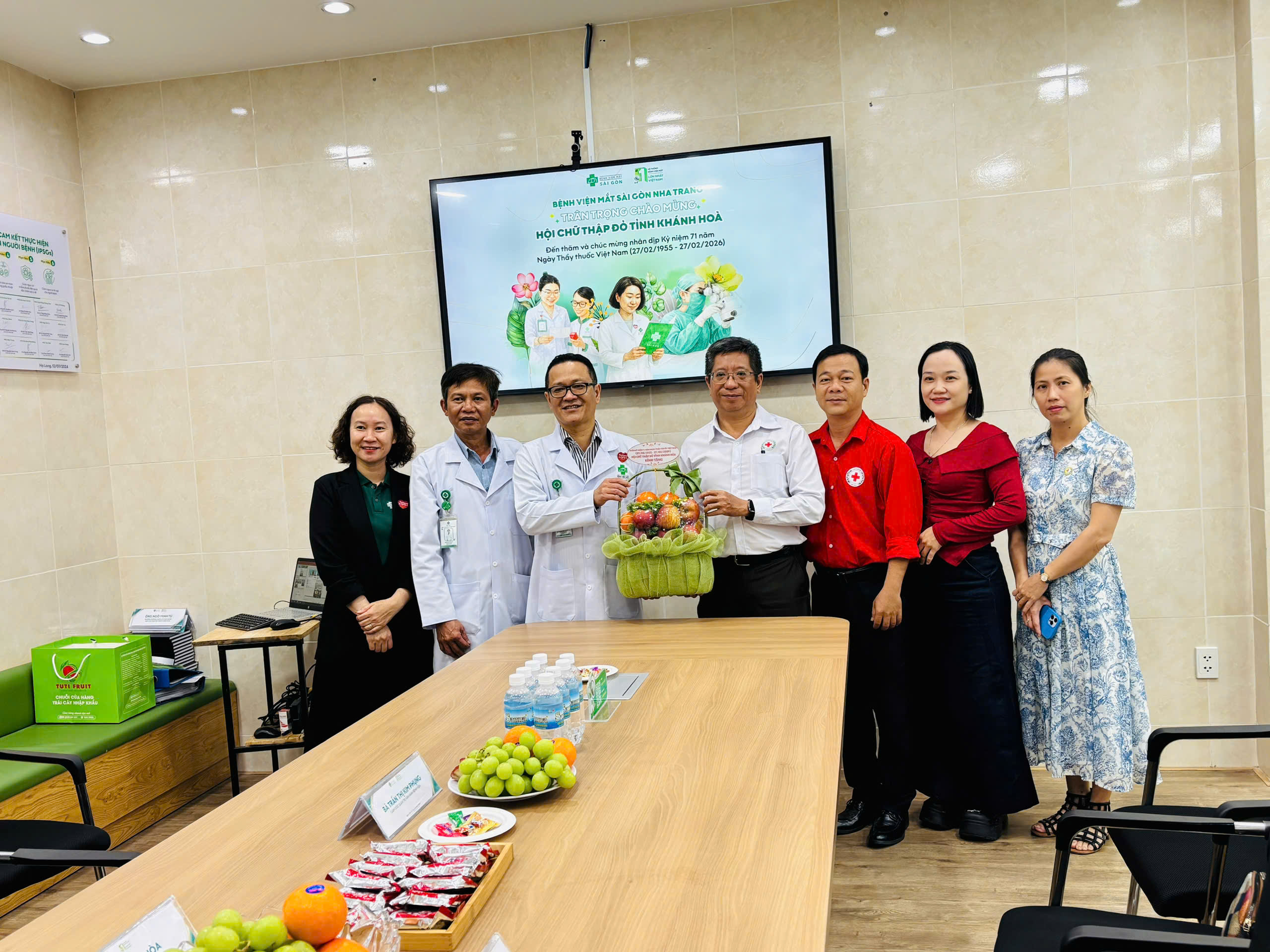 Ông Dương Nam Khánh, Chủ tịch Hội Chữ thập đỏ tỉnh Khánh Hoà, trưởng đoàn thăm, chúc mừng Bệnh viện Mắt Sài Gòn nhân kỷ niệm 71 năm Ngày Thầy thuốc Việt Nam