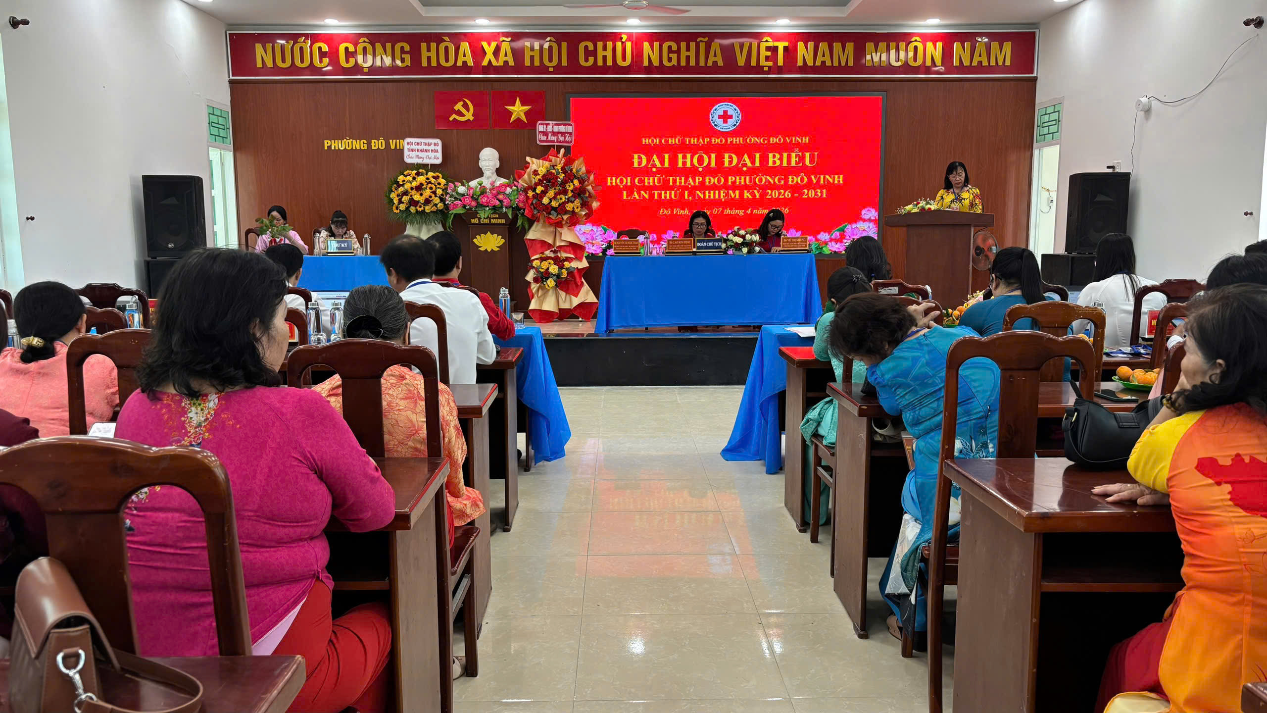 Tham dự Đại hội có ông Trịnh Vinh Sang, Phó Chủ tịch Hội Chữ thập đỏ tỉnh Khánh Hòa; bà Trần Thị Thủy, Phó Bí thư Thường trực Đảng ủy phường; bà Đậu Thị Lam, Chủ tịch Ủy ban MTTQ Việt Nam phường; ông Nguyễn Phương Nhân, Phó Chủ tịch UBND phường cùng 54 đại biểu chính thức, đại diện cho gần 1.000 cán bộ, hội viên, tình nguyện viên trên địa bàn.
