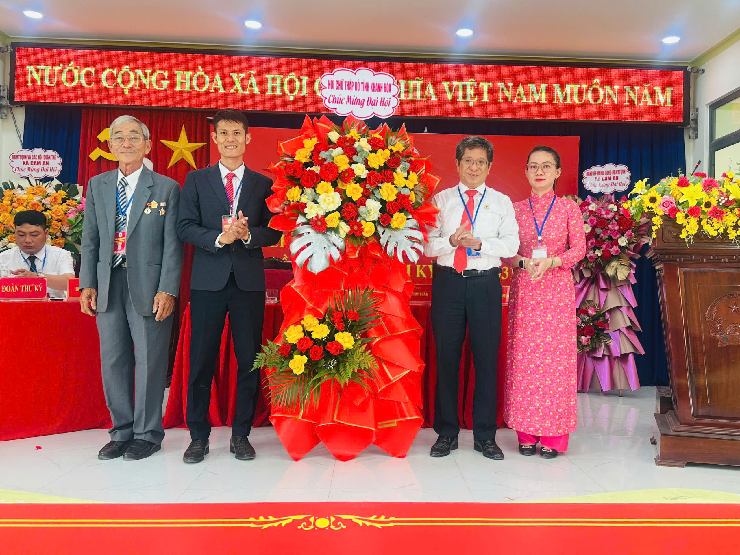 Tham dự Đại hội có ông Dương Nam Khánh, UV BCH Trung ương Hội Chữ thập đỏ Việt Nam, Chủ tịch Hội Chữ thập đỏ tỉnh Khánh Hòa; ông Nguyễn Thành Trung, Bí thư Đảng ủy, Chủ tịch HĐND xã; ông Nguyễn Đình Lam, Phó Bí thư TT Đảng uỷ, Chủ nhiệm UBKT Đảng ủy; ông Lê Thanh Văn, UV BTV Đảng ủy, Chủ tịch UBMTTQ xã; ông Nguyễn Hoài Đức, Đảng ủy viên, Phó Chủ tịch UBND xã; các đồng chí lãnh đạo Đảng ủy, UBND, UBMTTQ Việt Nam xã cùng 60 đại biểu chính thức.